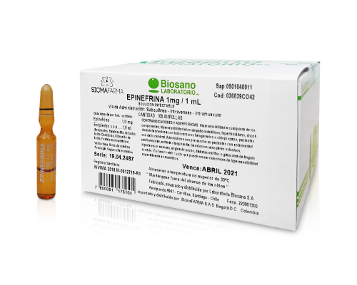 ADRENALINA(EPINEFRINA) 1MG CAJA X 100 AMPOLLAS (BIOSANO)