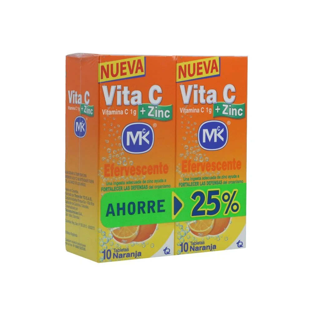 VITAMINA C ZINC EFERVESCENTE NARANJA 2 FRASCOS X 10 TABLETAS (MK)